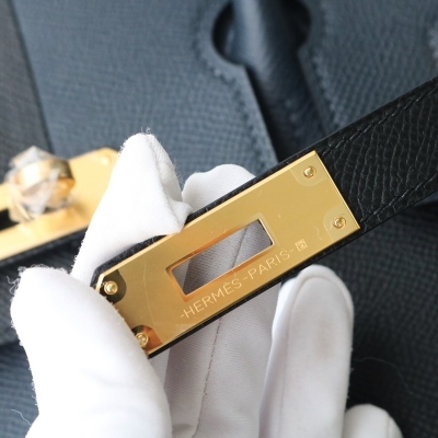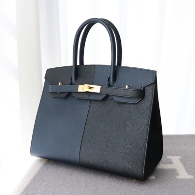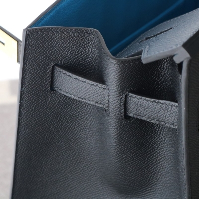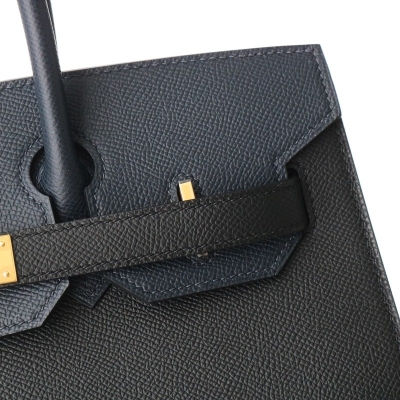 Birkin Sellier 30 Casaque Noir / Blue Indigo and Blue Frida interior Bag GHW
