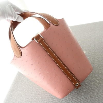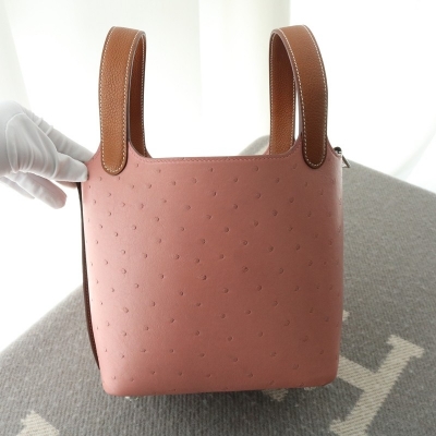 94 Terre Cuite ostrich and Fauve barenia picotin lock 18 with phw