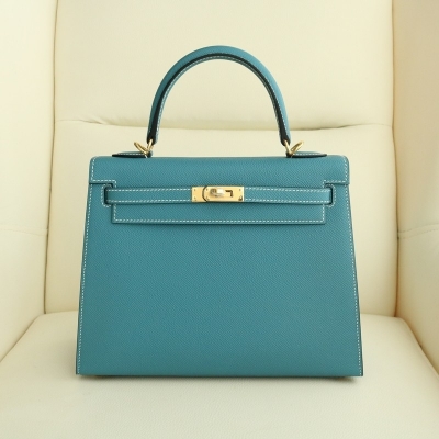 75 BIeu Jean Box Calf Kelly 25 With ghw