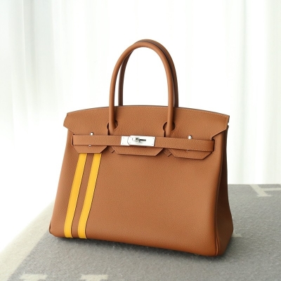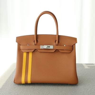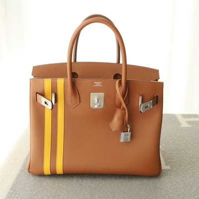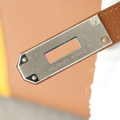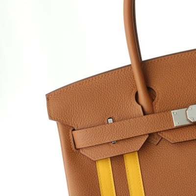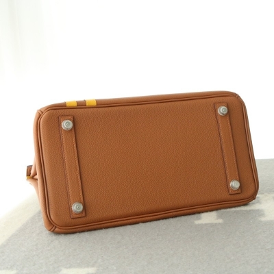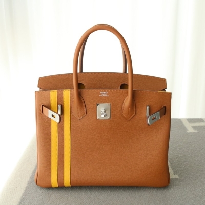 Hermes Birkin Officier 30 Gold/ Jaune ambre Togo leather/ Swift leather Silver hardware