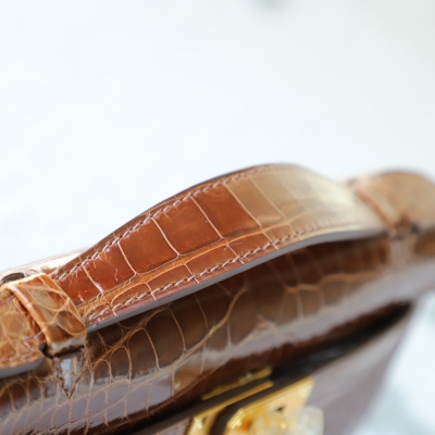 28 CarameI shiny alligator crocodile kelly pochette ghw