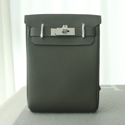 Hermes Tablier Sellier bag with Hunter cowhide, Swift calfskin and H canvas, Nior color, Phw