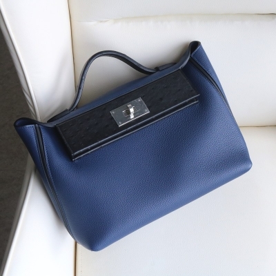 blue sapphire Clemence and black ostich kelly 24/24 with phw