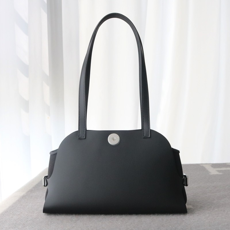 Hermes Tablier Sellier bag with Hunter cowhide, Swift calfskin and H canvas, Nior color, Phw