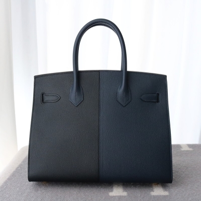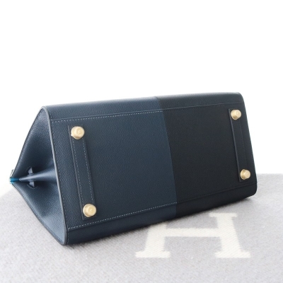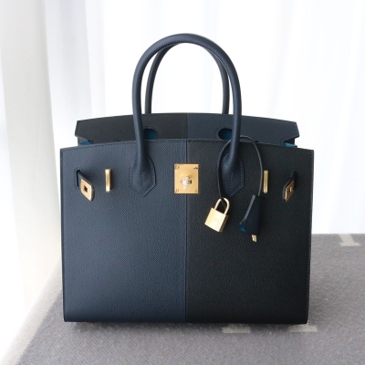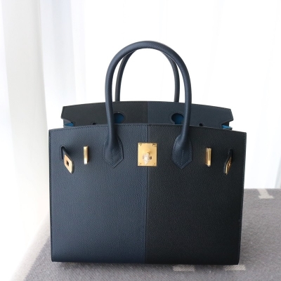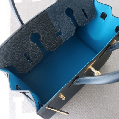 Birkin Sellier 30 Casaque Noir / Blue Indigo and Blue Frida interior Bag GHW