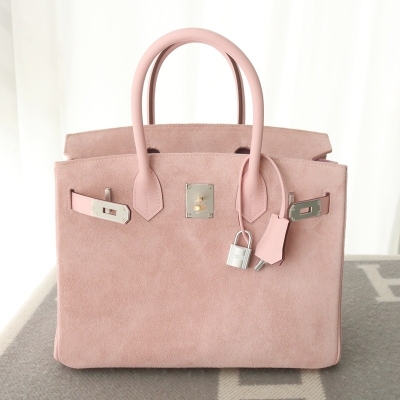 3Q rose sakura suede leather with mauve syIvestre interior birkin 30 with PHW
