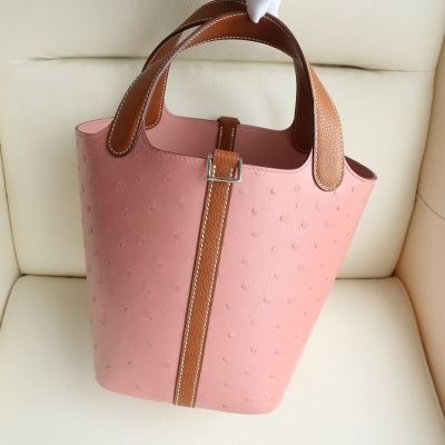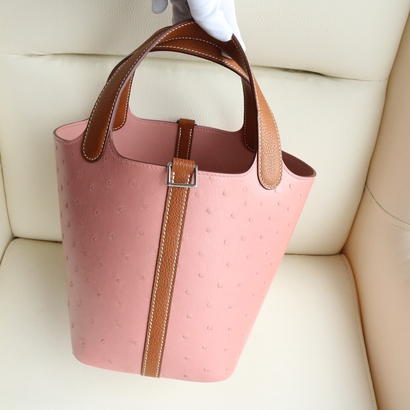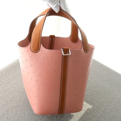94 Terre Cuite ostrich and Fauve barenia picotin lock 18 with phw