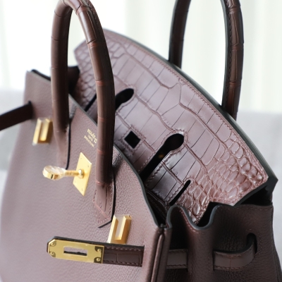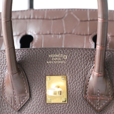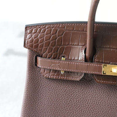 rouge sellier togo and matte aligator crocodile birkin 25 touch with ghw