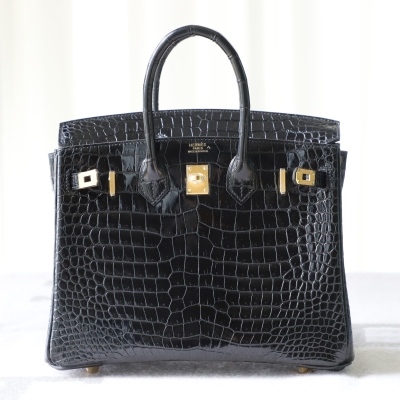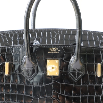 ck89 nior/black shiny Crocodylus porosus crocodile Birkin 25 GHW