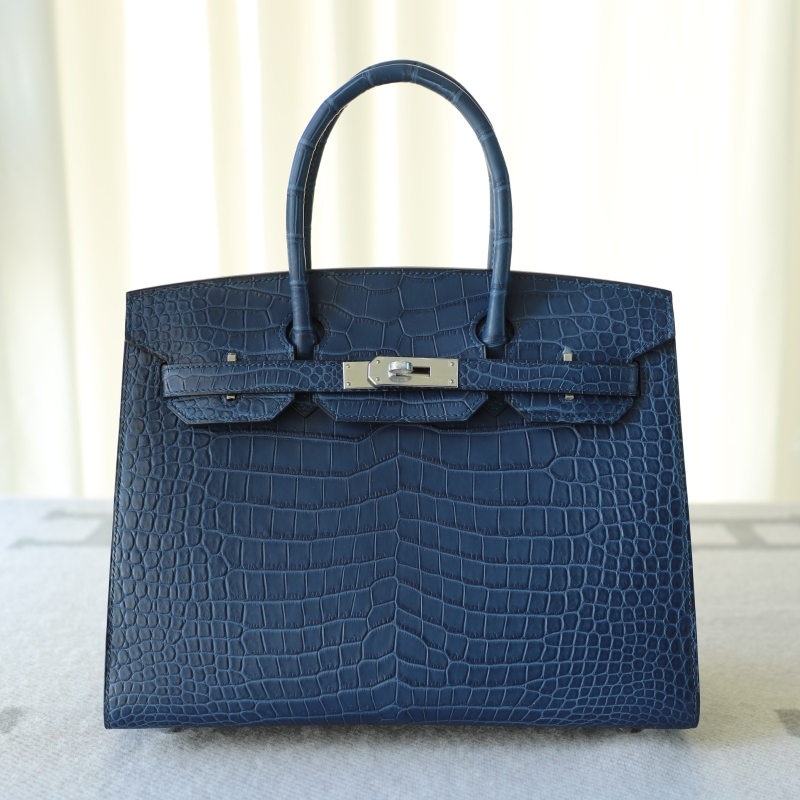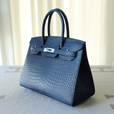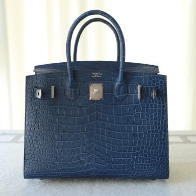 Limited Edition Birkin 30 sellier Indigo Aizome Matte Porosus Crocodile with Palladium Hardware