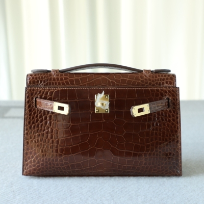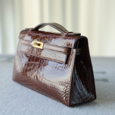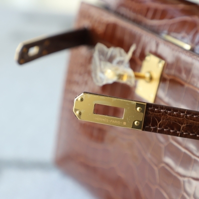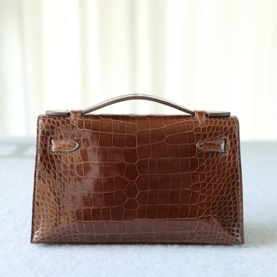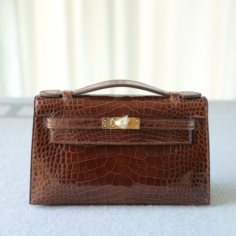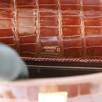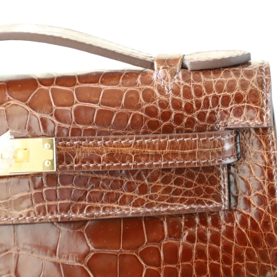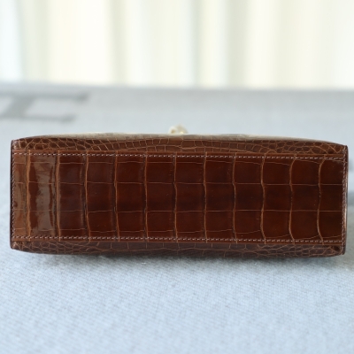 28 CarameI shiny alligator crocodile kelly pochette ghw