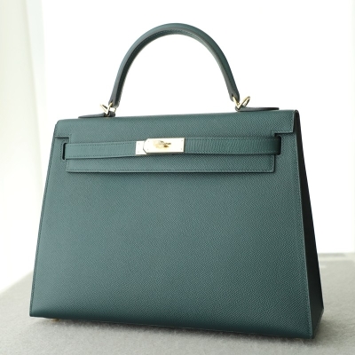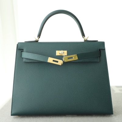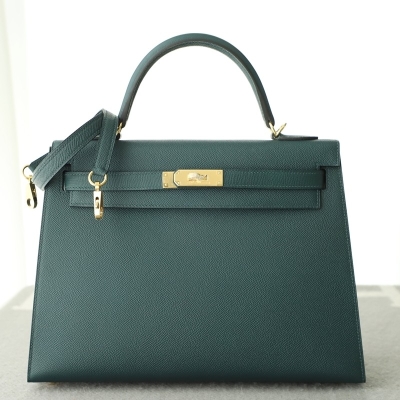 6O Vert Cypres Epsom Kelly 32 sellier with GHW