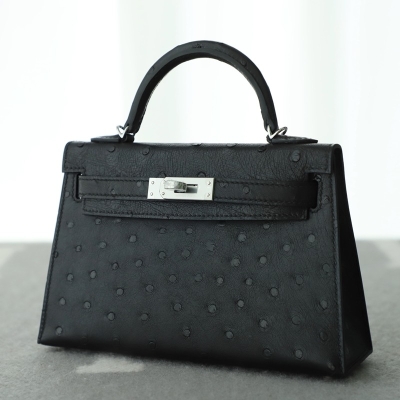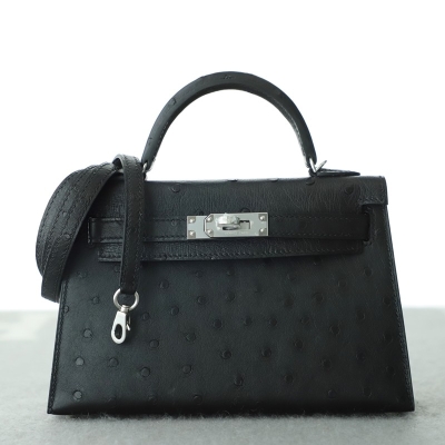 CK89 Nior/Black Ostrich Kelly Mini II With PHW