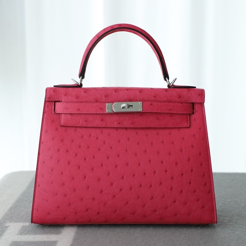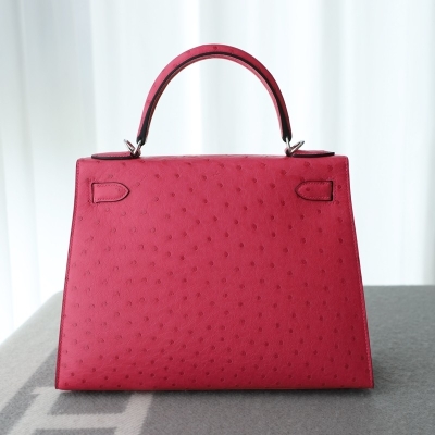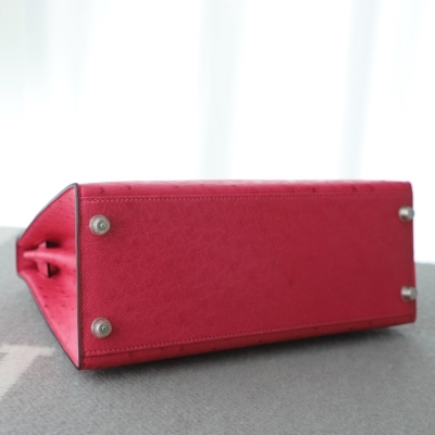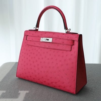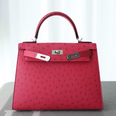 E5 Rose Tyrien Ostrich Kelly 28 Sellier With PHW