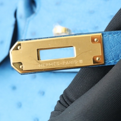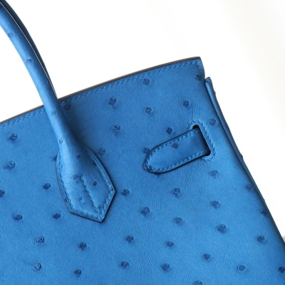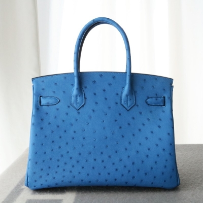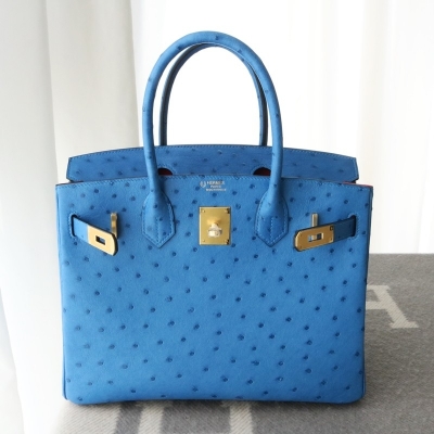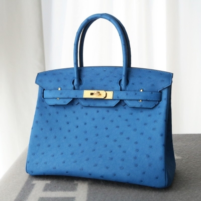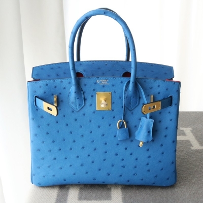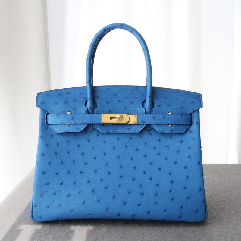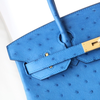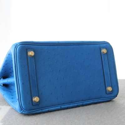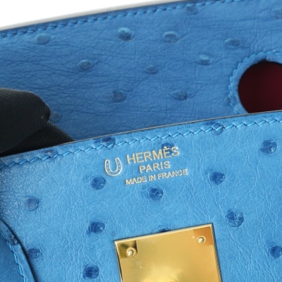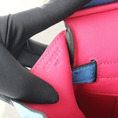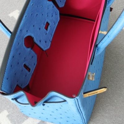 7Q Mykonos ostrich & 0D Rose Mexico interior birkin 30 with ghw